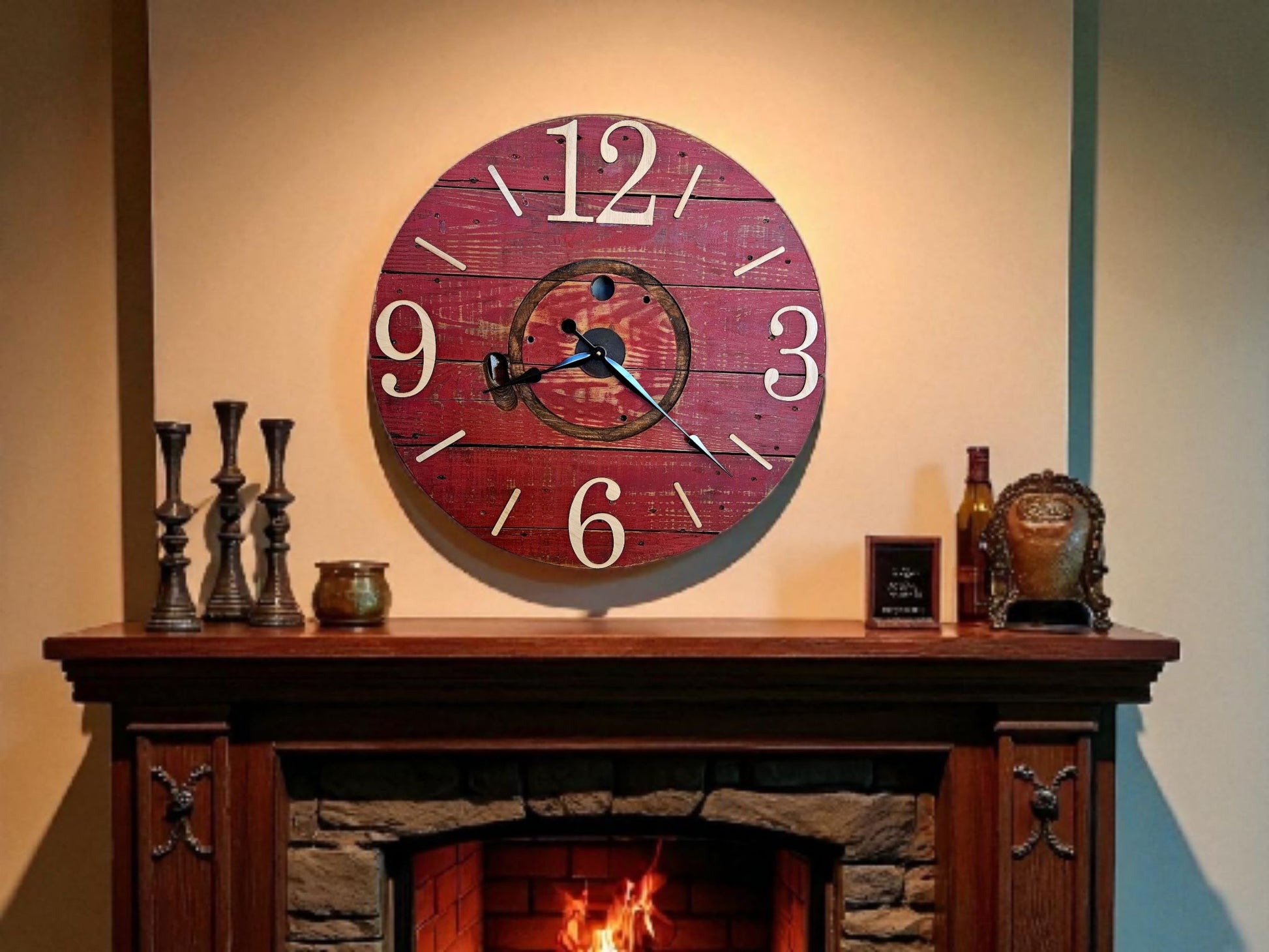 Oversized numerals and bold black hands make it easy to read from a distance, while the authentic spool design adds charm and originality you won’t find in mass-produced décor. Its substantial size makes it perfect for a living room, entryway, dining area, or any space that needs a warm, rustic focal point.