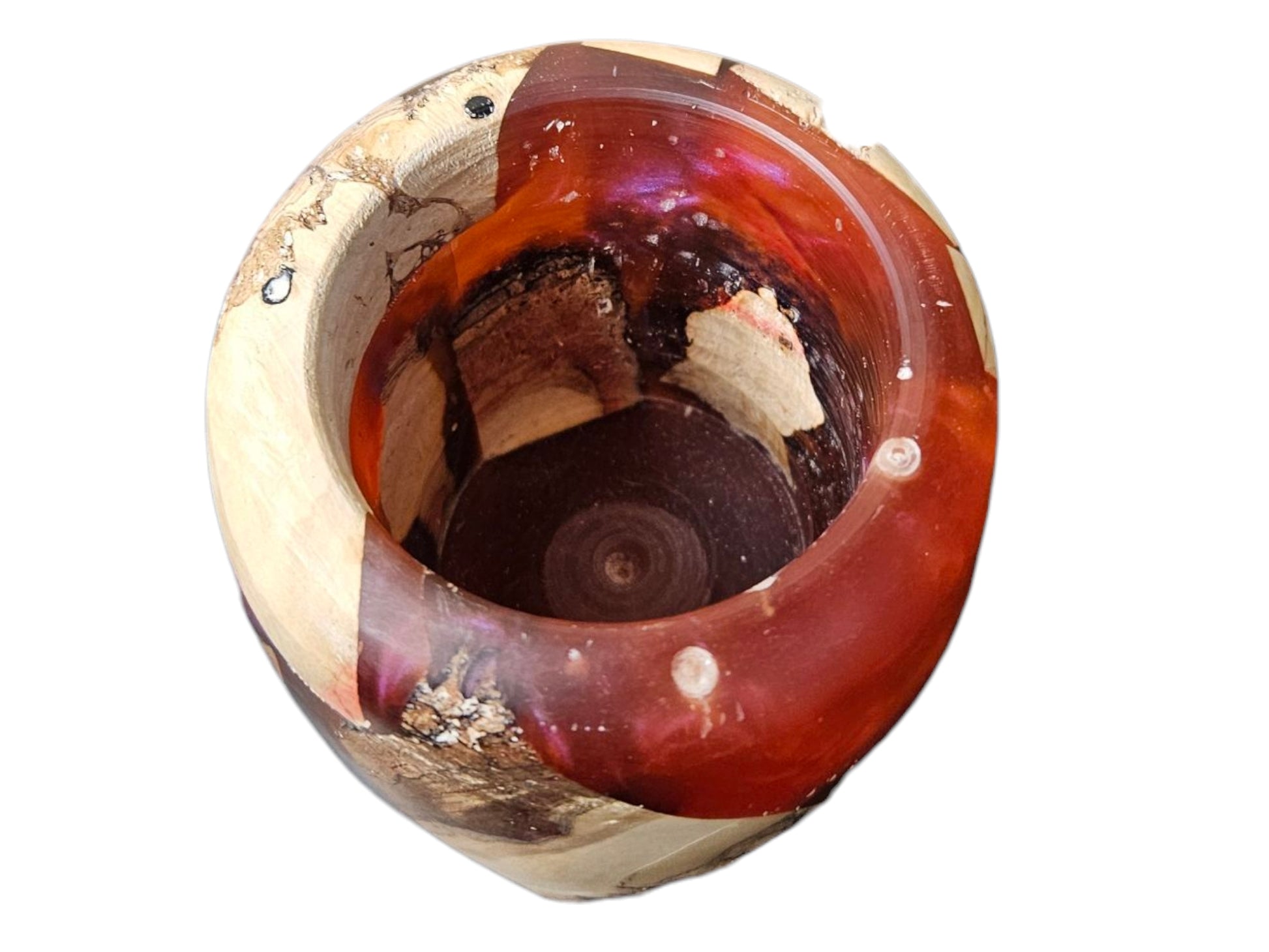 Red Epoxy with Flaming Box Elder Dish 3" x 4" #627