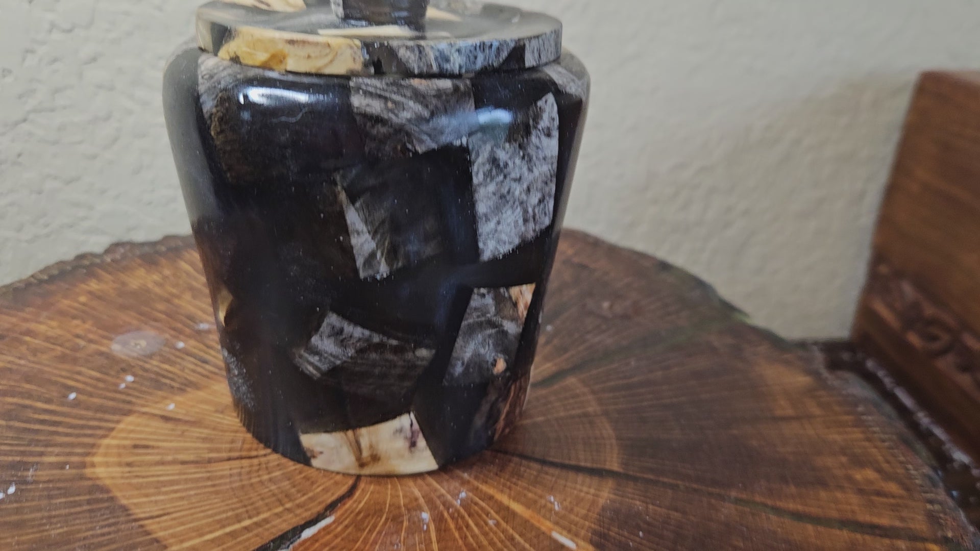 Black Epoxy with White Oak Lidded Jar 4" x 3" #622