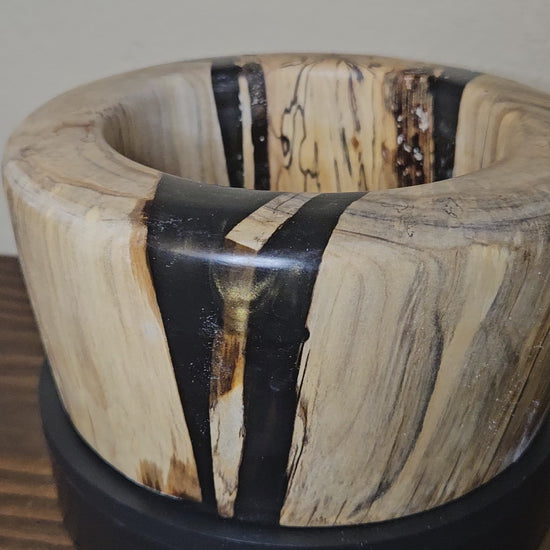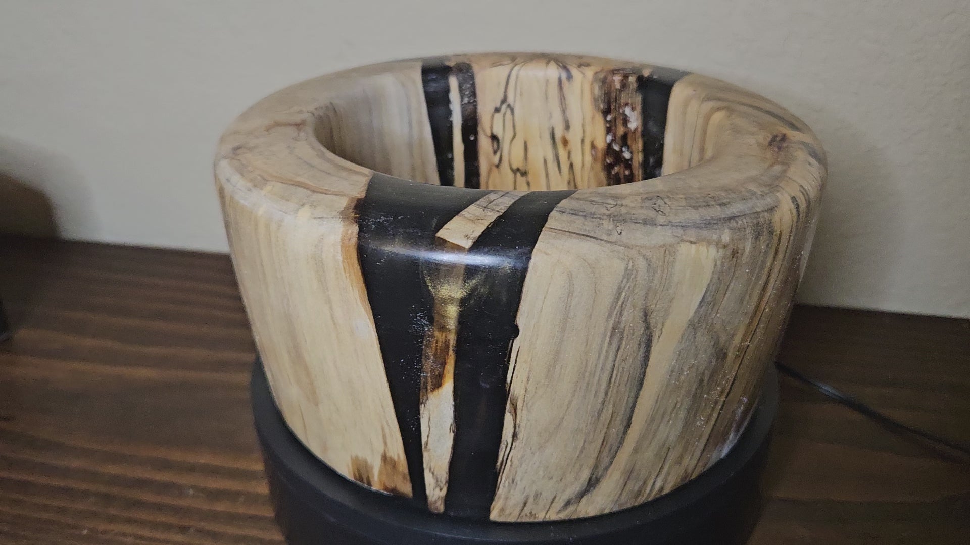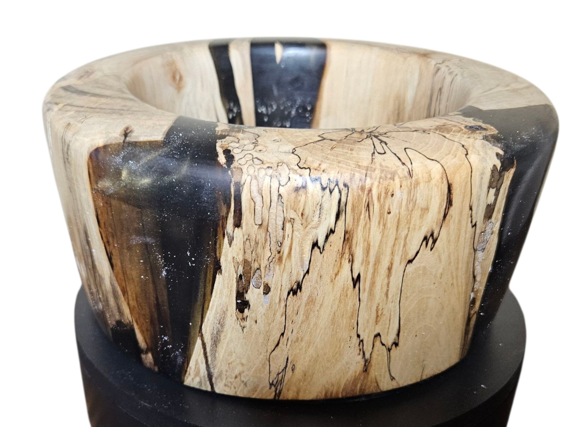 This Spalted Pecan Vessel is a striking blend of natural artistry and fine craftsmanship. Hand-turned from genuine pecan wood, this vessel showcases dramatic spalting patterns — intricate dark lines and contrasting tones that occur naturally as the wood matures. Each curve reveals the organic story of the tree, making this piece truly one-of-a-kind.